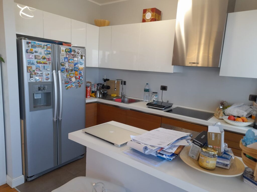 DOMAGNANO. Vendesi appartamento con ingresso indipendente composto da ampio soggiorno, cucina, due camere da letto, due bagni. Una scala a vista collega  un ampio sottotetto abitabile. L’immobile oltre al garage ha disponibilità di posti auto esterni. Vicinanza principali servizi. Vista mare.